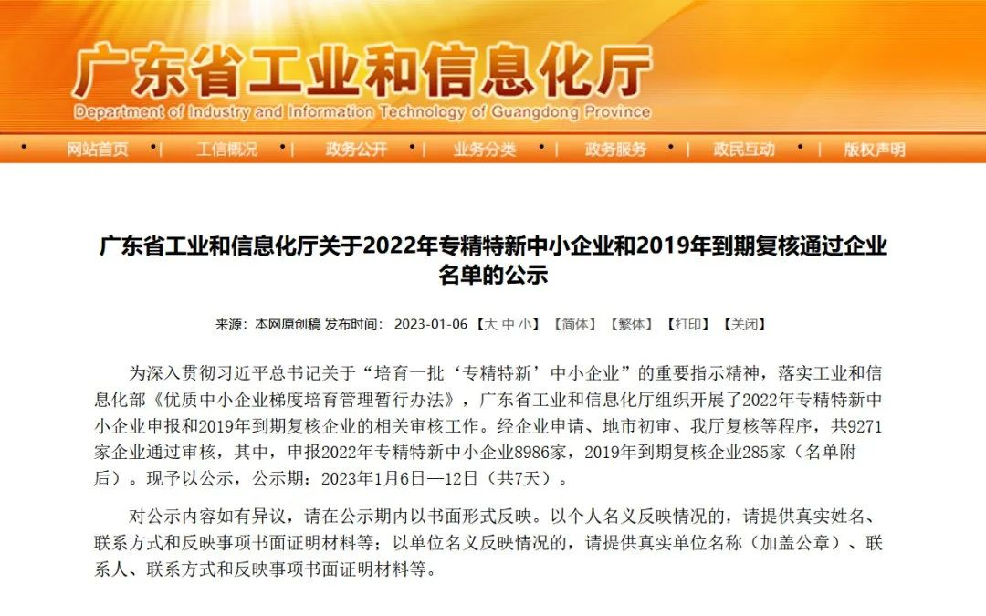 喜讯 | 祝贺华体会官方端网站登录入口通过2022年专精特新中小企业认定