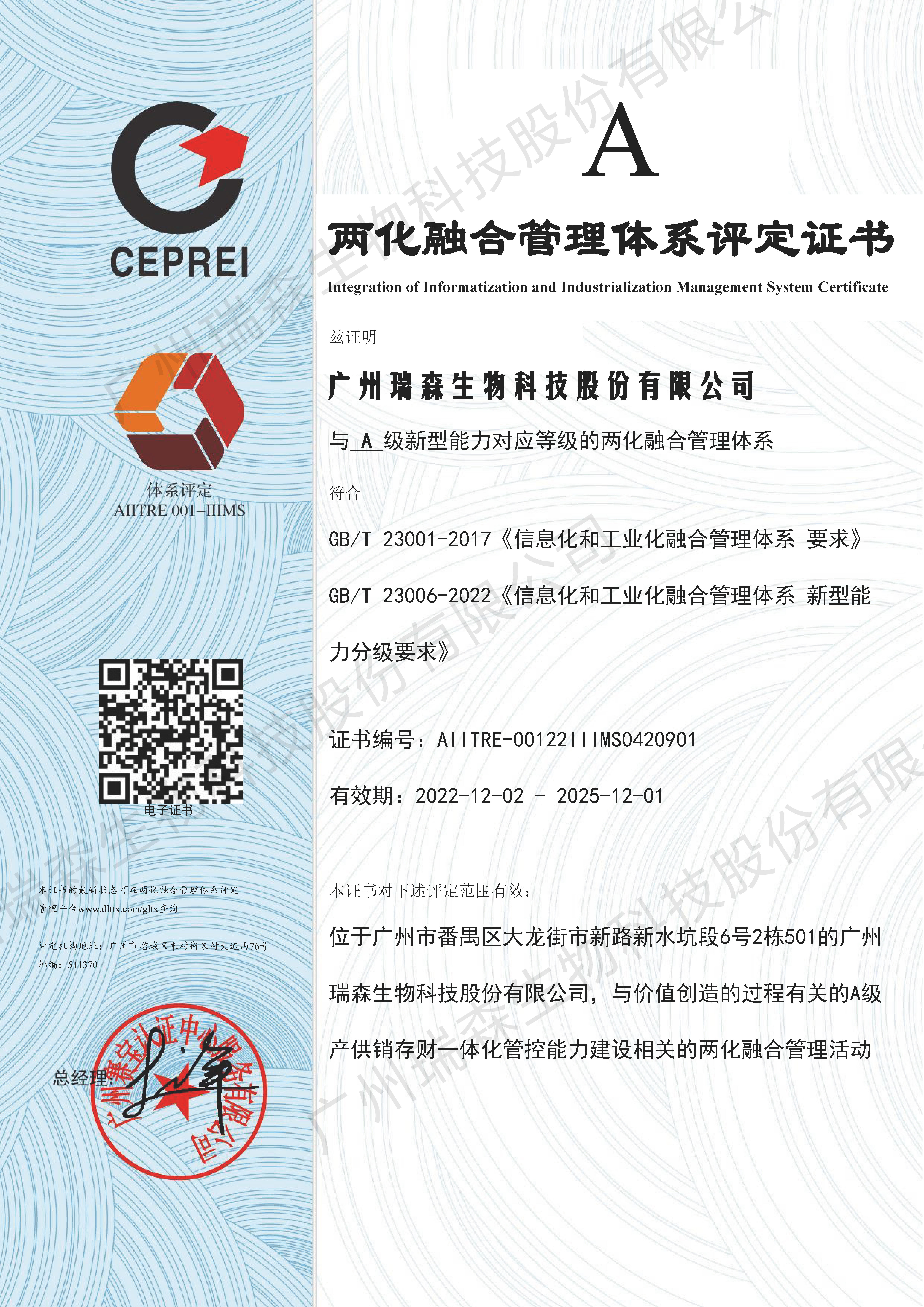 热烈祝贺华体会官方端网站登录入口获得A级“两化融合”管理体系认证!