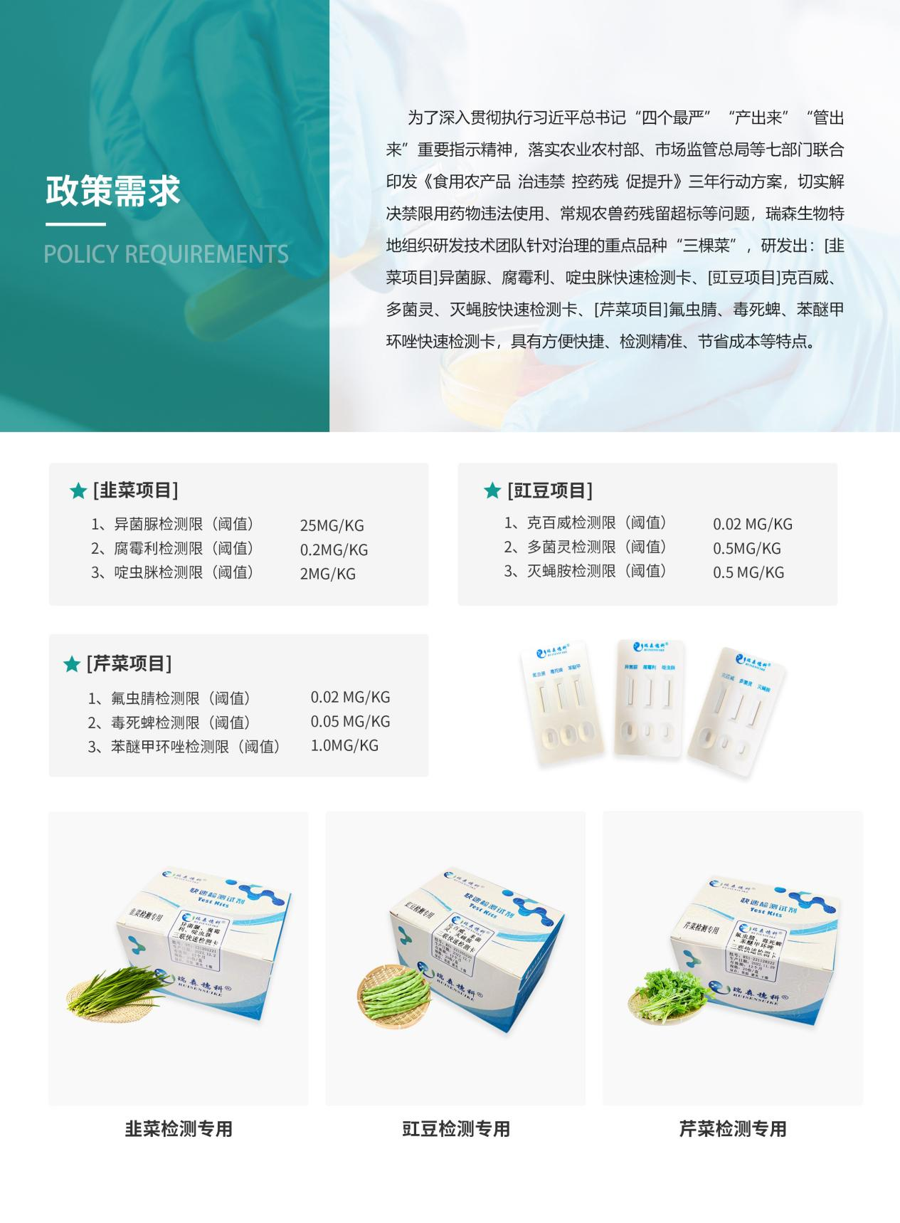 华体会官方端网站登录入口认真学习和贯彻农业农村部2023年全国农产品质量安全监管工作会议精神,积极拥护和响应《中华人民共和国食品安全法》。早在2021年国家农业农村部发布了《食用农产品“治违禁 控药残 促提升”三年行动方案》的通知后,华体会官方端网站登录入口就积极拥护和响应文件精神,并针对《方案》中提到的需要重点治理的11种农产品:“三棵菜”、“一枚蛋”、“一只鸡”、”肉牛肉羊“、“四条鱼”,推出了相关的新品应对方案,包括”农药残留胶体金多联检测产品系列“、”禽蛋药残专项检测解决方案“、”荧光定量快速检测产品“等相关技术领先的新型检测产品。有效解决了国家食用农产品存在的安全隐患问题,充分保障了老百姓”菜篮子“上的安全。