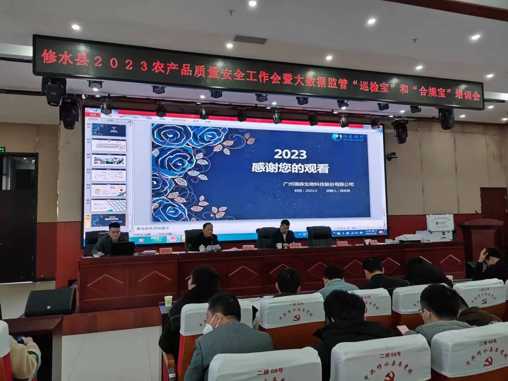 为加强修水县农产品质量安全网格化管理,全面推进大数据智慧监管平台运行,进一步提升修水县农产品质量安全水平,保障人民群众“舌尖”上的安全。2023年3月28日,“修水县2023农产品质量安全监管工作会议暨大数据智慧监管“巡检宝”和“合规宝”培训会议”在县委党校一楼报告厅召开。江西省九江市修水县各乡镇农业农村办(局)负责人及农产品质量安全监管站站长、全县入网监管的农产品生产经营主体负责人及操作人员、局属有关单位及机关有关股室负责人一同参与了本次培训会议。
