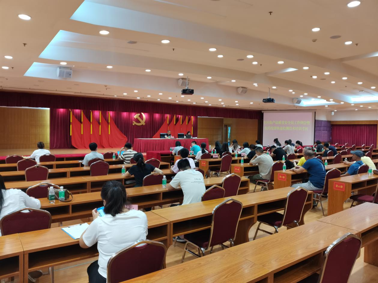 为强化广州市农产品质量安全监测体系建设,提升各级农产品质量安全监测机构的检测能力,切实保障产地农产品质量安全。2023年7月28日,”天河区农产品质量安全员工作例会暨农药残留快速检测技术培训考核会议“在天河区人民政府机关大院2号楼会议室召开。天河区农业农村局分管领导、全区各街道办全体专职农产品质量安全员及农业线口主要工作人员、全区各经济联社农业线口主要工作人员参与了本次培训会议。华体会官方端网站登录入口技术培训同事受邀为本次培训班所有参训人员就“食用农产品快检技术介绍”课题做了培训,并取得良好效果。