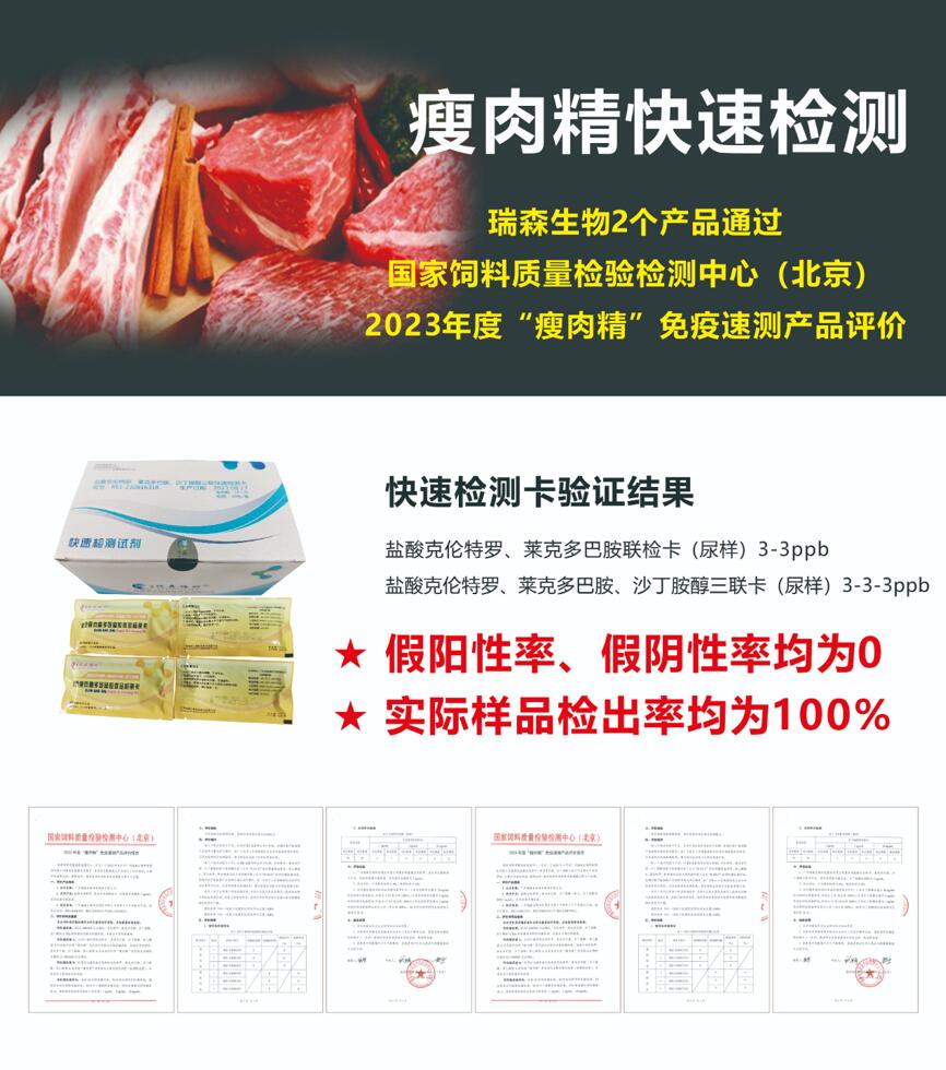 依据评价指标,华体会官方端网站登录入口“盐酸克伦特罗、莱克多巴胺联检卡”(尿样 3-3 ppb)、“盐酸克伦特罗、莱克多巴胺、沙丁胺醇三联卡”(尿样3-3-3)2种快速检测卡的假阳性率、假阴性率均为0,实际样品检出率均为100%。